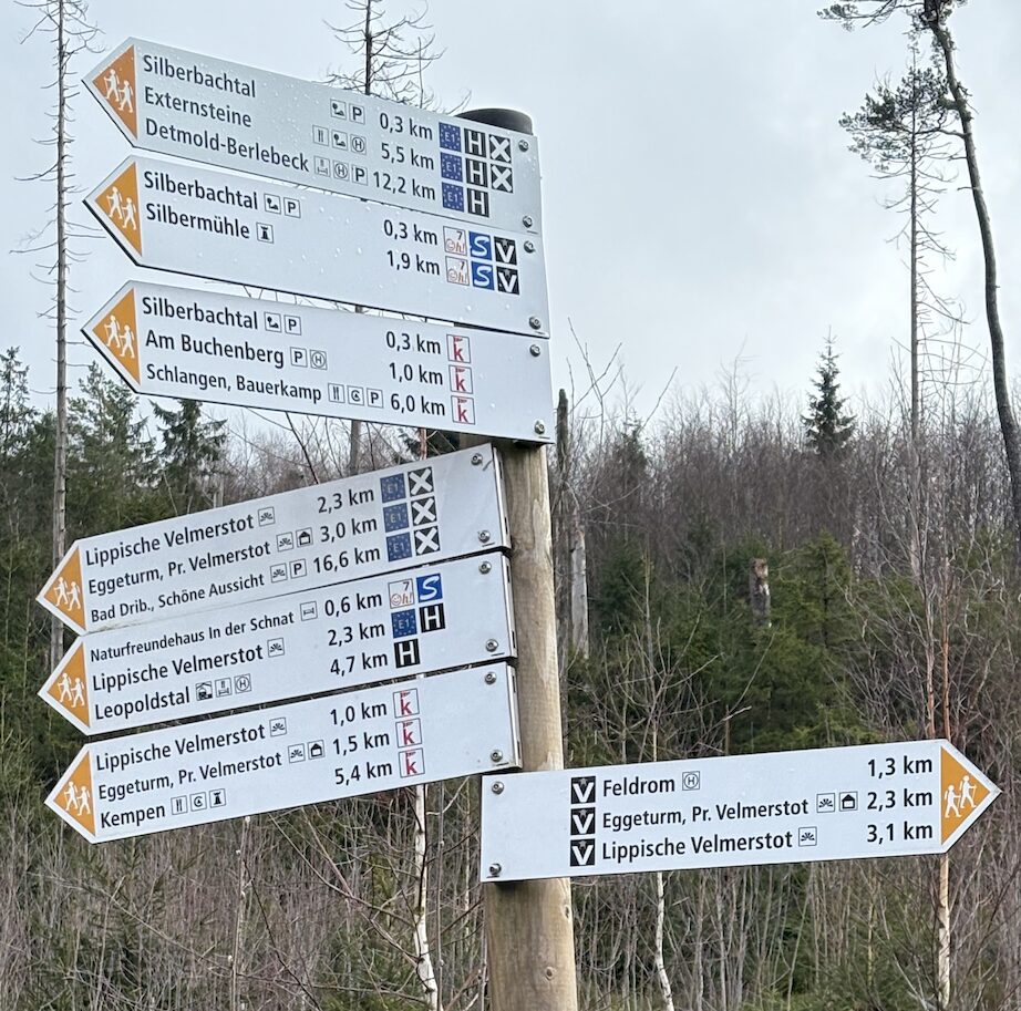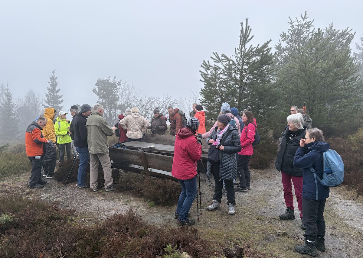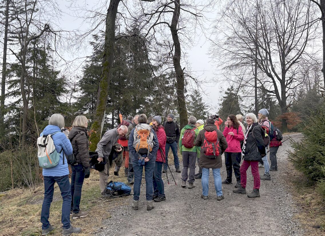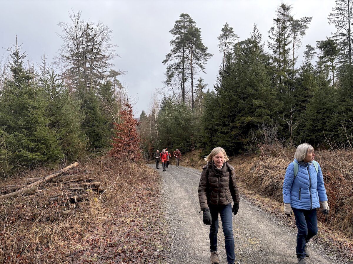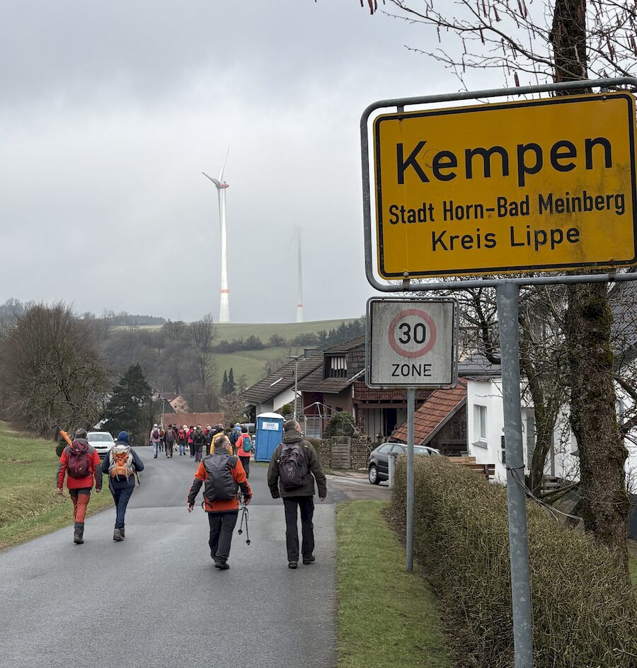 Dort starteten 25 Wanderinnen und Wanderer bei gutem Wanderwetter und frischen 3°C zum ersten Etappenziel, der 441 Meter hohen Lippischen Velmerstot.