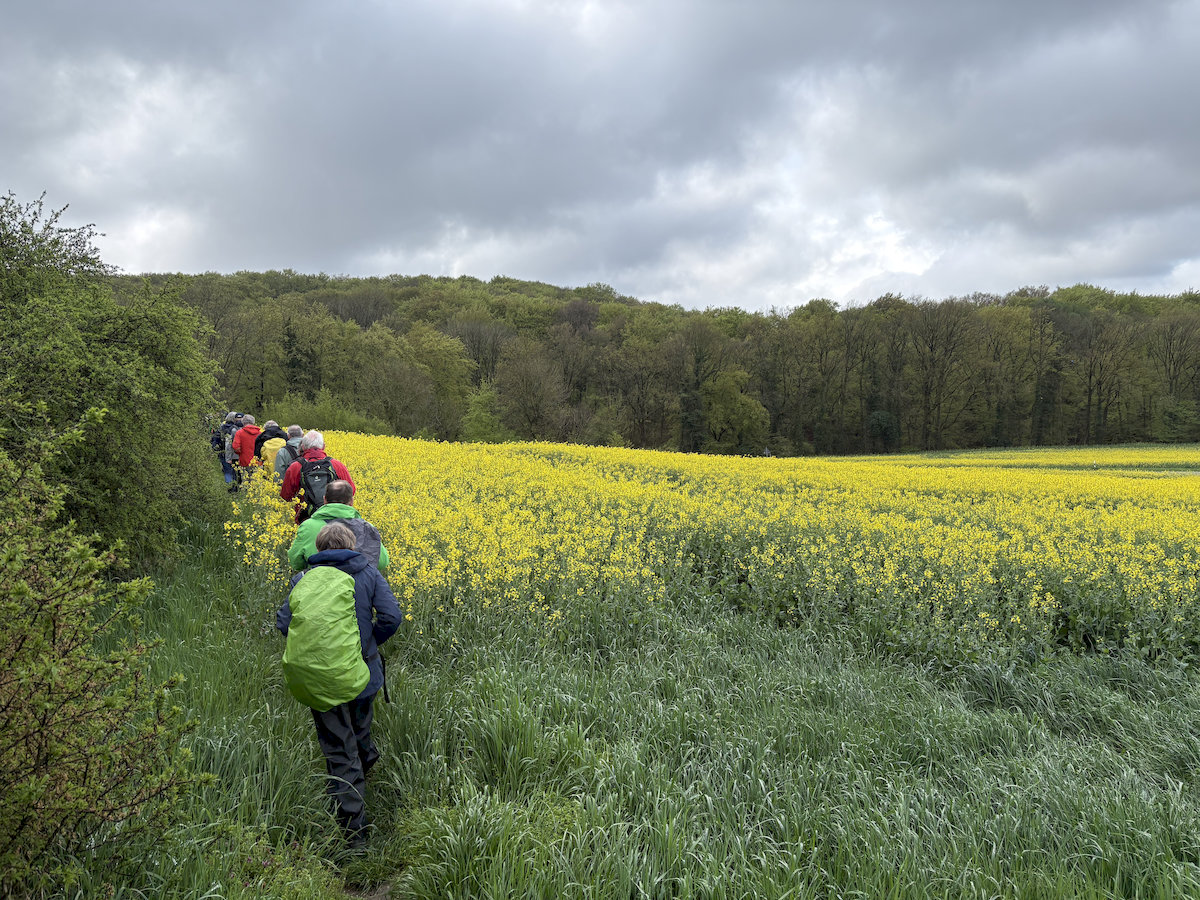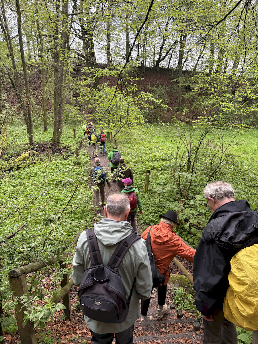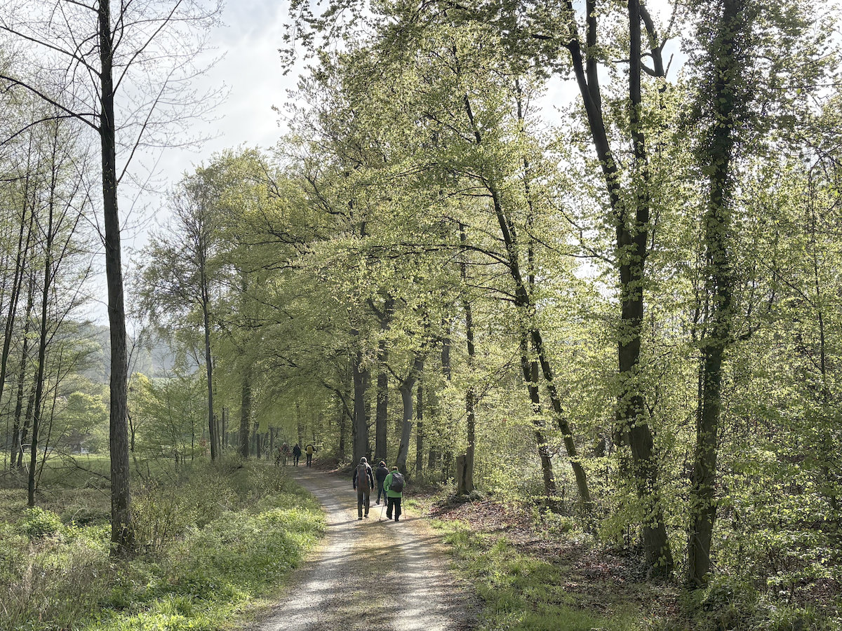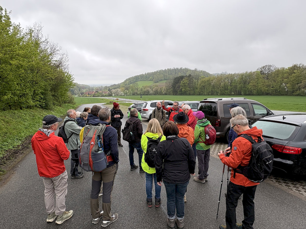 Nach dem Treffen um 08:00 Uhr an der Sporthalle der Lisa-Tetzner-Schule in Schloß Holte fuhren wir zum Wanderparkplatz „Werther Schanze“ in Halle-Ascheloh, wo dann kurz nach 8:30 Uhr 22 Wanderer und Wanderinnen Richtung Storkenberg aufbrachen.